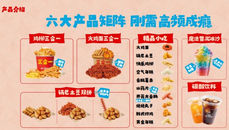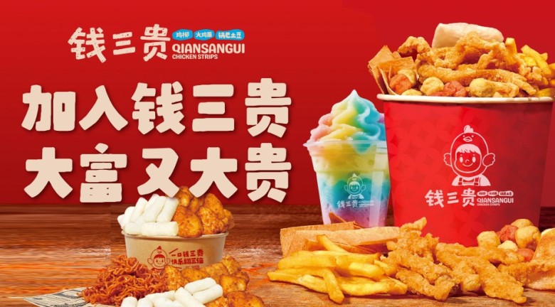 钱三贵深耕中韩传统小吃品类,主打鸡柳、火鸡面、锅巴土豆三大爆品+雪泥冰沙/山药片强力引流,引爆街头财富。